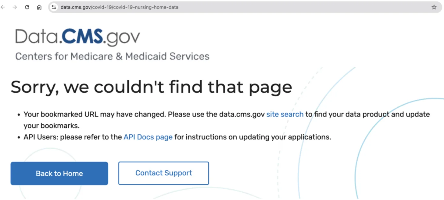 Der in dieser Analyse verwendete Datensatz stammt aus dem National Healthcare Safety Network (NHSN) der CDC und basiert auf Meldungen von Pflegeheimen, die für Medicare und Medicaid zertifiziert sind. Seltsamerweise wurde dieser Datensatz von der öffentlichen Website der CMS heruntergeladen und ist nicht mehr öffentlich zugänglich. Glücklicherweise konnten die Autoren die Daten noch abrufen, bevor die Regierung die Webseite löschte. Derzeit ist diese archivierte Version die einzige öffentlich zugängliche Quelle für diese Daten.