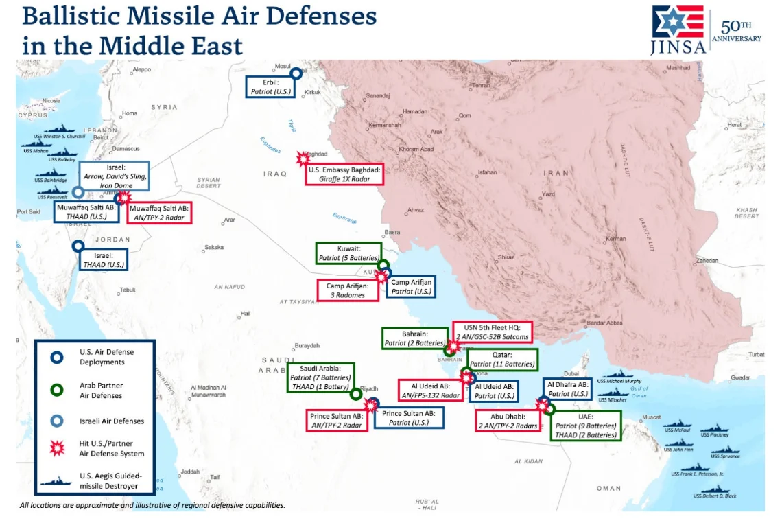 „Die meisten Stützpunkte, Häfen und Städte am Golf liegen nur wenige Kilometer von iranischen Abschussgebieten entfernt, was die Zeit verkürzt, die den Verteidigern zur Erkennung, Verfolgung und Abwehr ankommender Bedrohungen zur Verfügung steht. Iranische ballistische Raketen, die in Richtung Kuwait, Bahrain, Katar oder die Vereinigten Arabischen Emirate abgefeuert werden, können ihre Ziele innerhalb von drei bis zehn Minuten erreichen – ein Bruchteil der ohnehin schon kurzen 12 bis 15 Minuten, die ballistische Raketen benötigen, um Israel zu erreichen.“